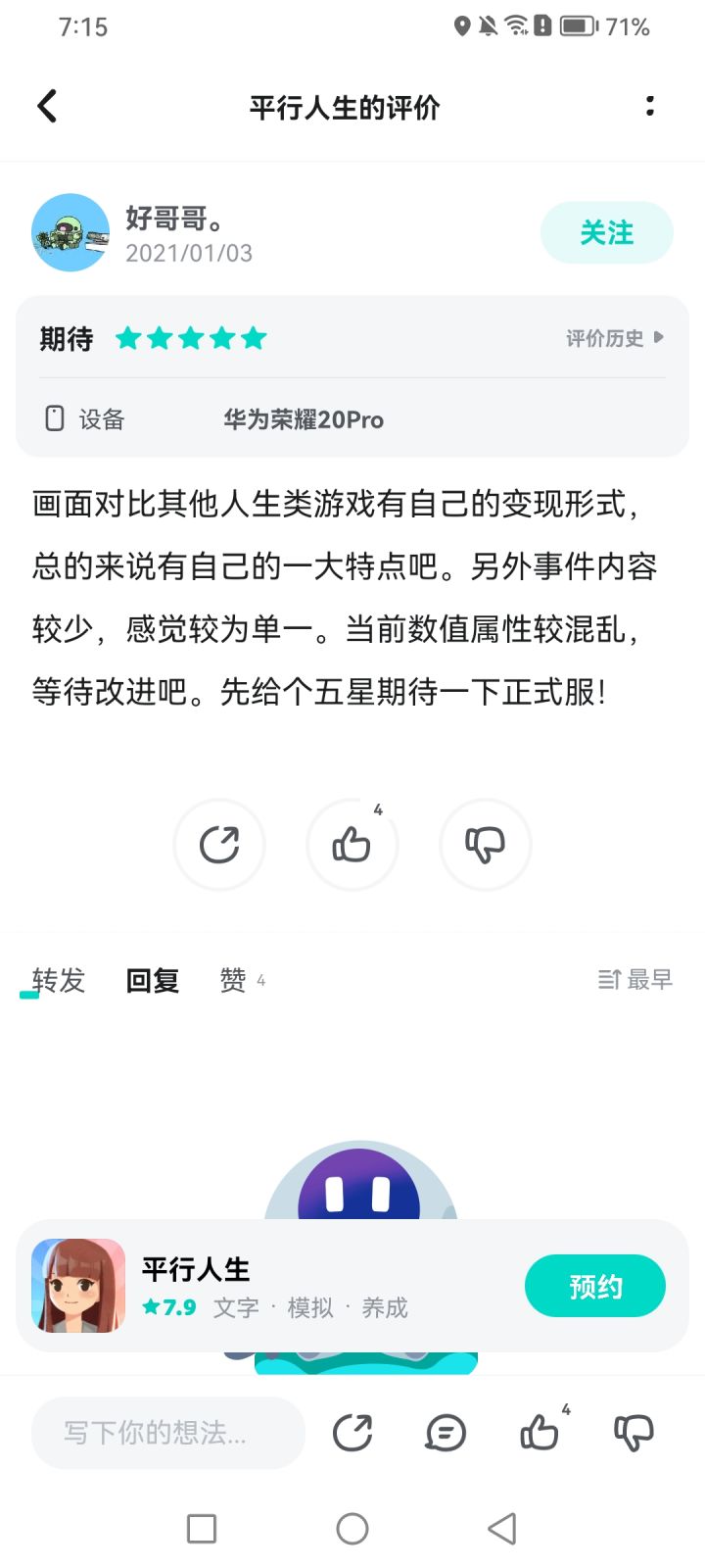 亲爱的平行伙伴们~【测试时间】2021-2-8上午10点在TapTap官方渠道开放第二轮删档测试,截止至2021-2-22下午17点。【地址】【平台对象】本次测试为安卓平台不限量删档测试,届时可前往TapTap渠道下载安装包体验;(IOS将于后续版本推出,敬请期待)【安装体验】若存在《平行人生》首轮删档测试包,需卸载后,重新下载最新版本的APK包安装方可正常体验;【版本】本次版本为2.0