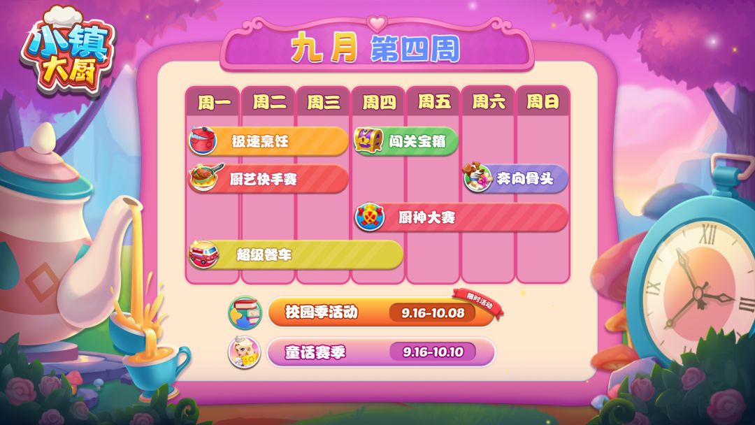 新的一周,元气满满~ 周一三个活动同时开启,『极速烹饪』『厨艺快手赛』『超级餐车』,大厨们更喜欢哪一个活动呢? 本周末,校园季活动店铺和童话赛季即将上线!大厨们记得更新到3.22版本哦~