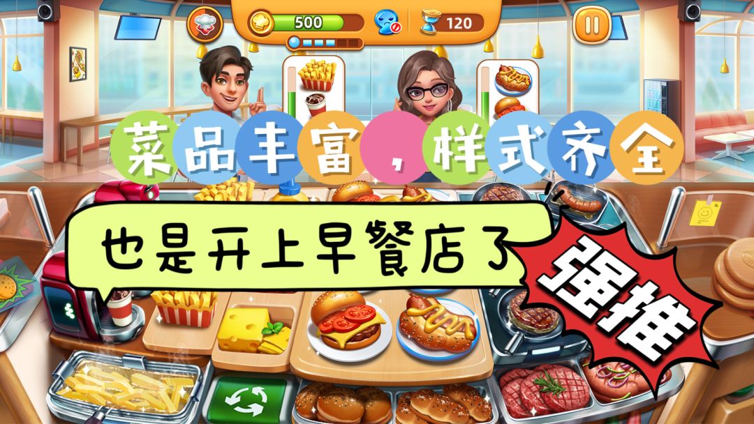 ⭐️⭐️⭐️ 游戏玩法简单易懂,先是在小镇开早餐店赚金币升级设备,之后开汉堡店,随着关卡的解锁越开越多菜品也越来越多#宝藏游戏安利派对#游戏安利#游戏推荐