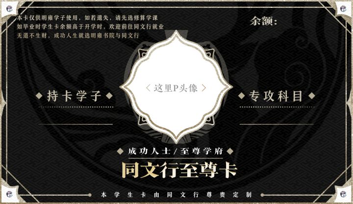 盼望着,盼望着,9月开学季的脚步来了。虽明雍书院不能在此季节开学,但,我们为学子们准备了一套新的学生卡。选取任意学生卡模板,P上你的头像和信息自制学生卡,9.3-9.10带前缀【学生卡】发布至#花亦山心之月[超话]#(划重点,超话哦),即可参加书院学生卡分享活动~我们将抽取部分分享自制学生卡的学子送出以下奖励:【开学快乐奖】排场喊话开学祝福视频(3名)【开学锦鲤奖】随机故宫大明猫桌面摆件