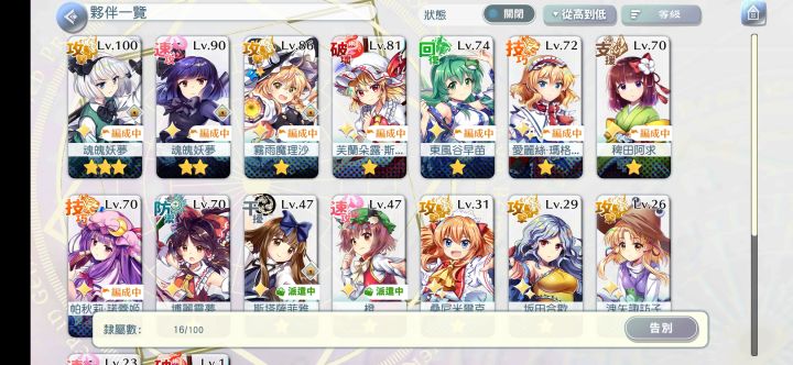 六天时间只练出一个半角色,我这是不是太最求低耗了😂,可怜的妖梦被压榨到死去活来,好感都被我刷负了,除个别被克属性有人帮补刀外,单人通关了活动全关卡以及主线简单模式全关卡