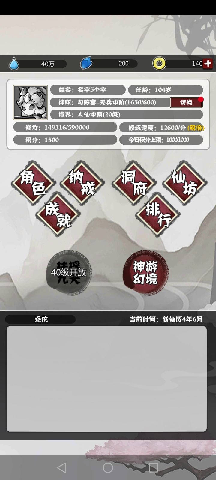 当前游戏包含主身和神游幻境两种模式主身不会死亡,可随意切换神职,学习各种功法神游幻境时角色寿元不足会死亡,在幻境中成长1.仙玉主身:1.在每日福利的看广告中获得2.扶摇九天的每层通关奖励3.点击头像打开设置界面,完成接引或被接引时获得幻境:1.神游幻境中的仙玉每次开始时都会重置,不会影响主身的仙玉数量2.神游幻境中的初始仙玉为主身当前仙玉数量和部分成就奖励之和2.灵石主身:1.