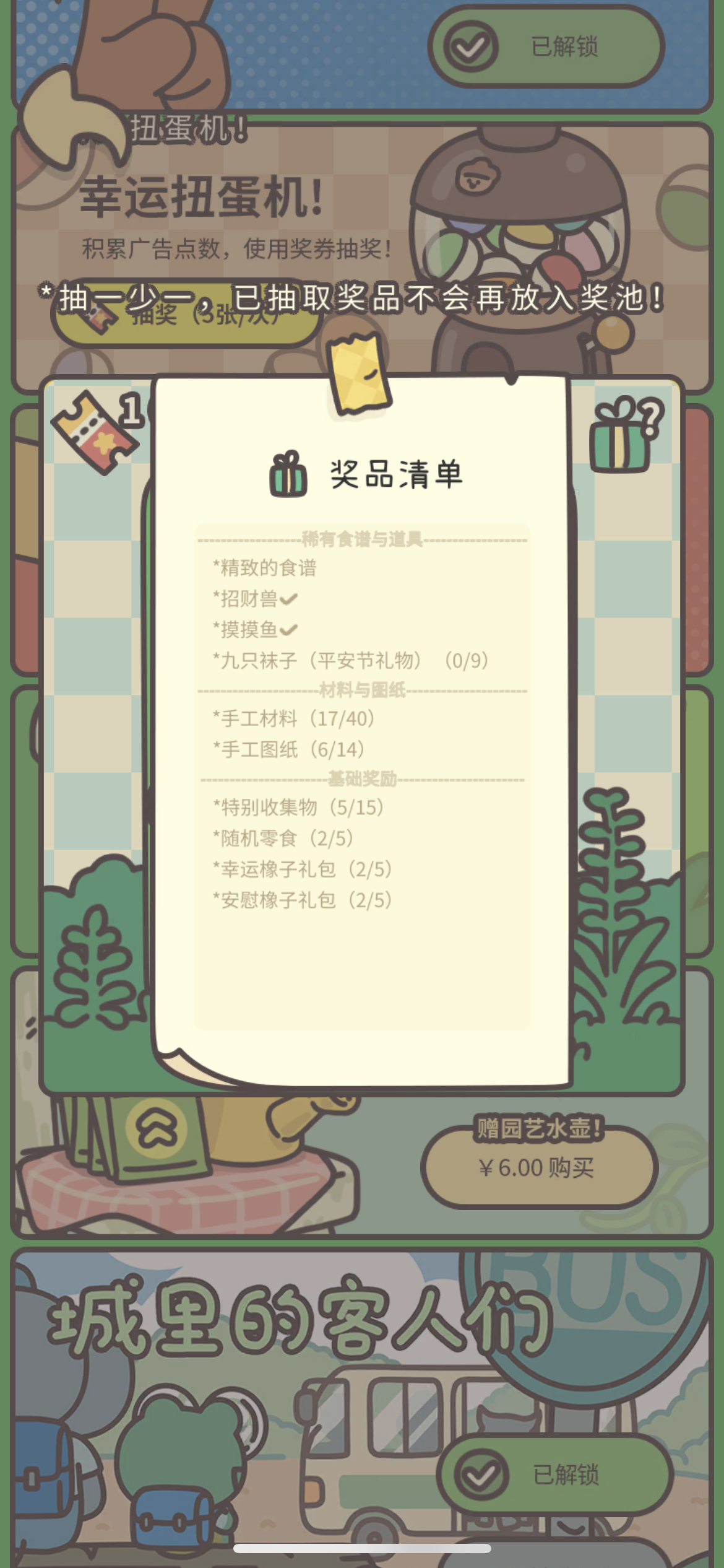 玩了很久了,还差这两个客人,想问下是需要什么菜单?菜单是通过扭蛋机盲盒还是戳洞洞?
