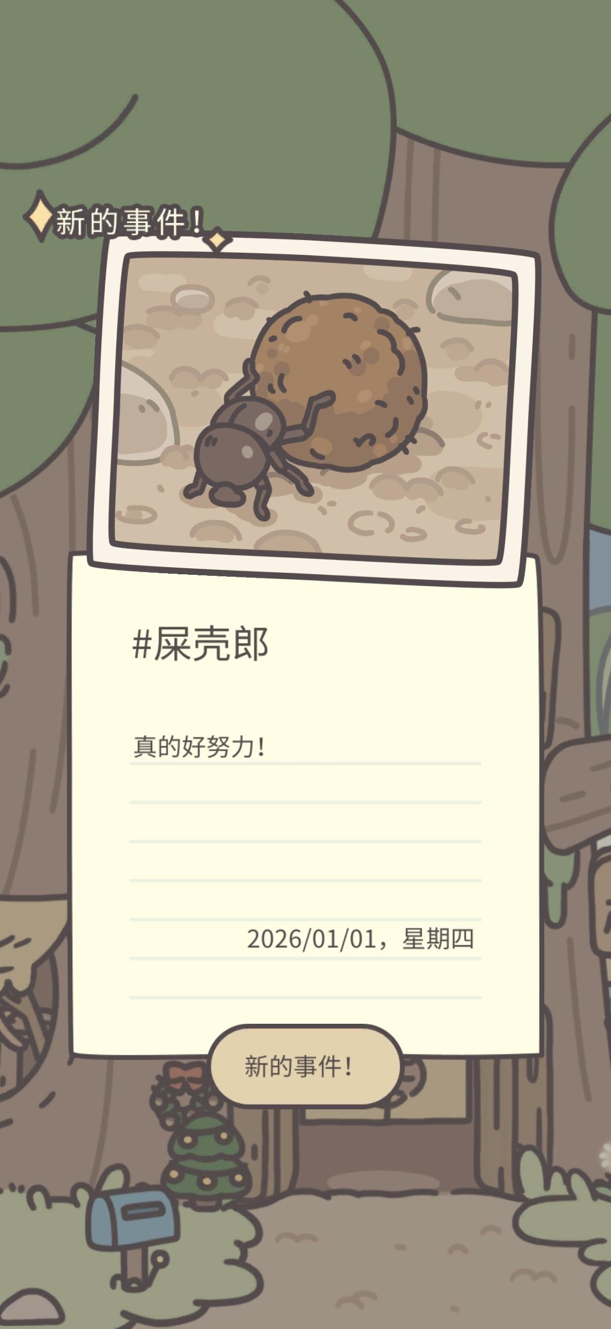 新年第一天,屎壳郎来到了树屋门口。 快去找