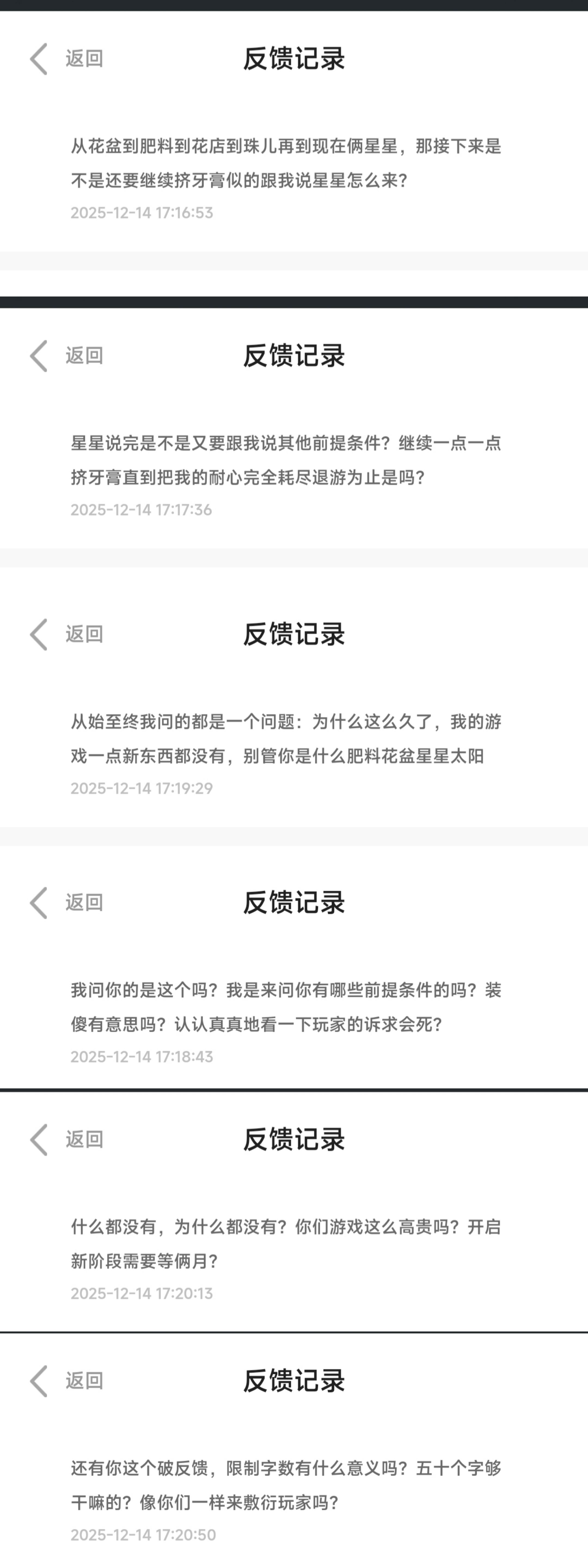 人话是听不懂的,问题是不解决的,反馈是不回复的,游戏是不更新的,玩家是用来敷衍的