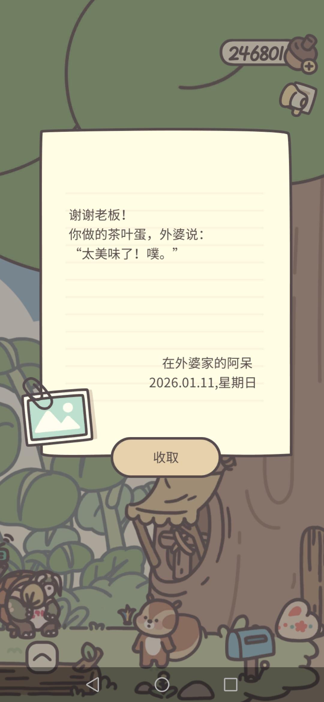 日记:《开心的外婆》收到一封阿呆的信,看完信后自动触发,同时也获得了阿呆的最后一颗故事⭐128篇日记详情(持续更新)https://www.taptap.cn/moment/637241520008726376?share_id=9eb19923aabd&utm_medium=share&utm_source=copylink