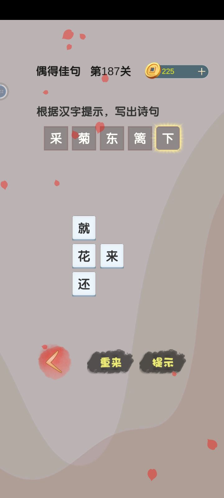 挺好玩的,游戏界面很干净很中国风,每个诗词都有出处,还有解释,可以很好的学习诗词,很好。