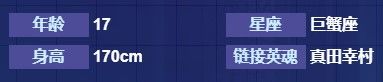 CV:生天目仁美藤原幸子参上。作为一名武士,定会确保殿下的安全。啊,这么称呼您,不介意吧。藤原幸子从小受父亲的严格教导,无论是哪一方面,都对自己非常苛刻。平日说话有些拘谨、刻板,但内心其实像其他同龄少女一样心思细腻,只是不善表达。