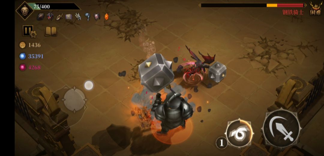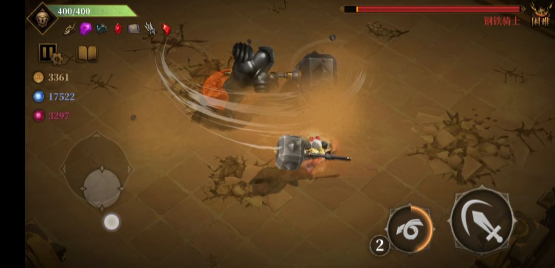 前期武器用寒冰法杖 存3次普攻,翻滚后下一次普攻变为冰锥,附带冰冻效果,可以打断BOSS即将释放的技能(哪怕伤害指示圈出来了,BOSS的伤害也会取消) 存6次普攻则是3条冰锥 剧情和挑战模式的BOSS,靠走位加冰冻控制一点点的刮痧磨死 天赋的第二武器和两件副武器早点解锁 副武器是普攻攒满能量条来释放 推荐散射箭塔/暗影瓶,打BOSS天劫机械分身阶段好用 武器强化不要花这个500金币,血亏 普通武器