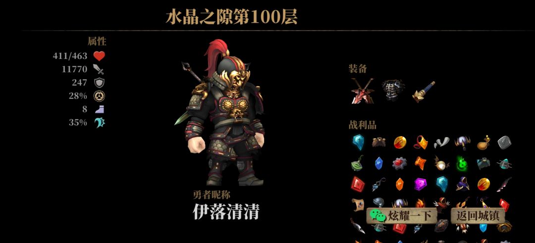 实在无聊,想起角落里还有这个游戏,肝了三天运气比较好,爬了10多次100层就双刀觉醒了,双刀真心适合任何场景,操作比较无脑,速刷魂石基本稳定在5分半左右,刷大锤觉醒2阶段材料的时候基本1分半左右,版本之子不是开玩笑的!!!据说大锤的打击感更好,速刷能5分钟之内,等大锤觉醒后再汇报,下面说说这三天爬塔的收获吧。 武器:麒麟双刀(最适合爬塔的武器) 护甲:暗魔-镶嵌雷电护符(闪电链清怪神器)-大嘴魔像