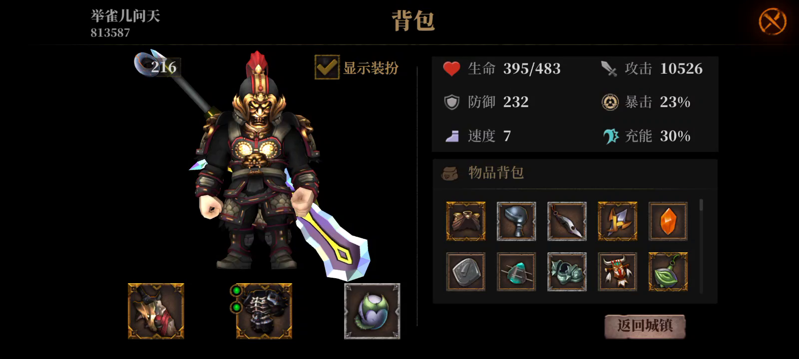 原套装是,独角兽铠甲,镶嵌吞噬小怪和电击链,武器本来是电仗和副武器闪电,后来因为伤害实在太高,懒得搞眩晕了,换了大剑