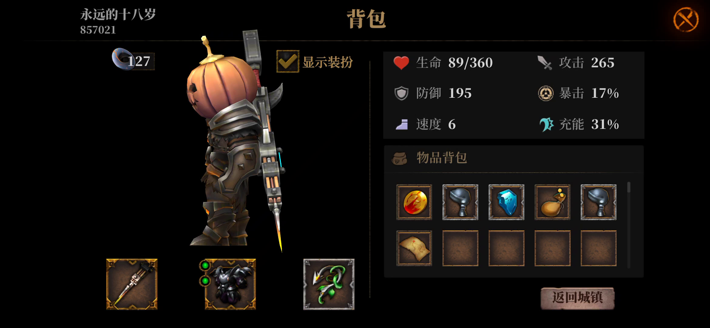 核心就是:战争金币丶狂战士护符丶大嘴魔像丶陨石碎片。期间其他战利品全部卖掉。比大剑都猛,视频是我随意刷的一局,只要核心有了其他的不重要