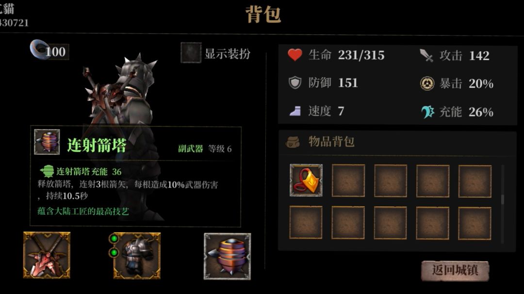 主武器麒麟双刺,副武器散射箭塔永远的神,没什么好说的。其实就是护甲,以及护甲上镶嵌宝石的不同。单刷首领的时候,把尖刺上的战争硬币换成雷电圣物就可以。