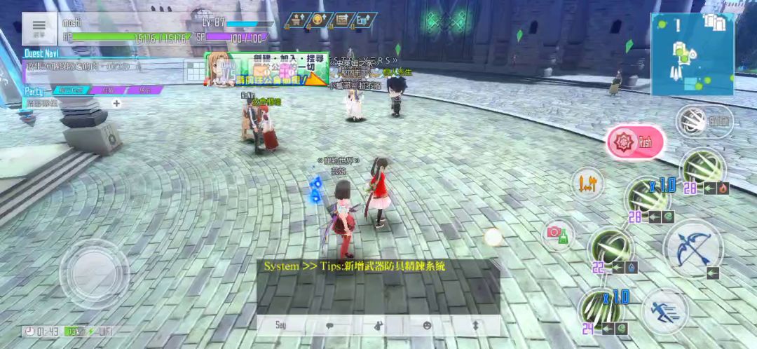 刀剑味很冲,真的很有味道,场景的构建以及调色让我这种动画粉燃起来了,游戏的进入ui什么的也很还原动画,角色待机的时候会出现功能列表,还原度很高,尤其是一开始的npc们的原画很奇怪正在我失望的时候,SAO无法