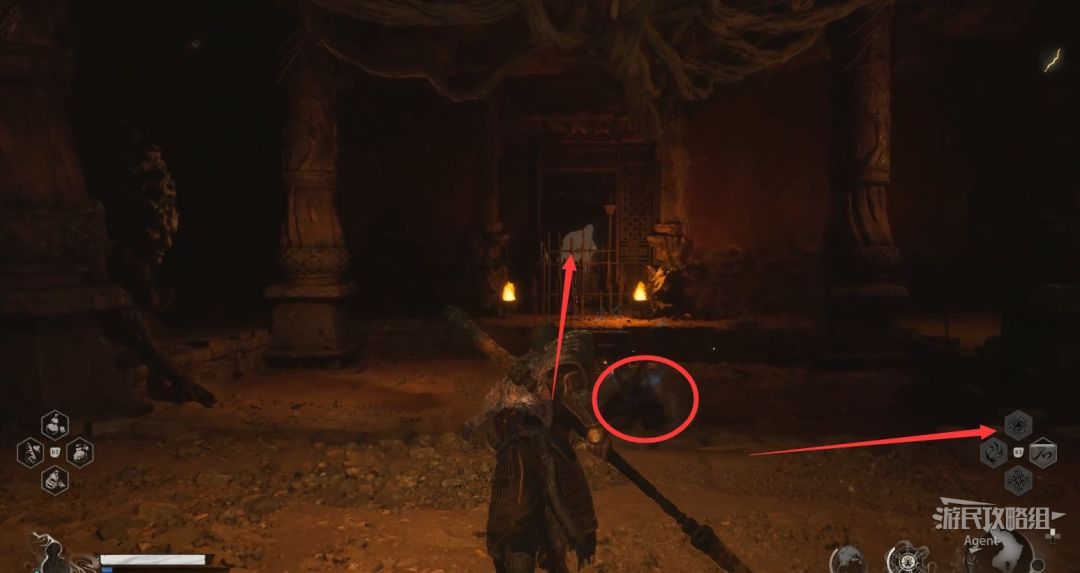 第二回-黄风岭 九转金丹击败【沙大郎】后钻过狭缝后,打蝙蝠得到【精魄】疾蝠。打碎前方障碍物进门,到最里面拿到【九转金丹】增加气力上限。