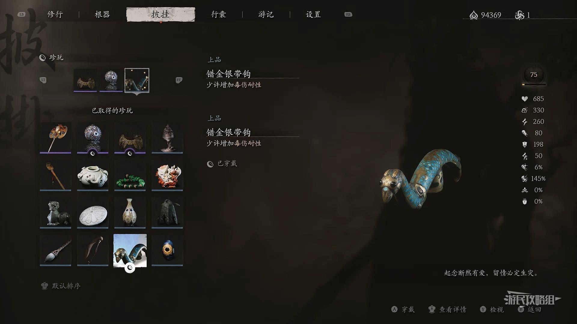 《黑神话悟空》第四回珍玩获取方法 第四章珍玩有哪些_上品-错金银带钩