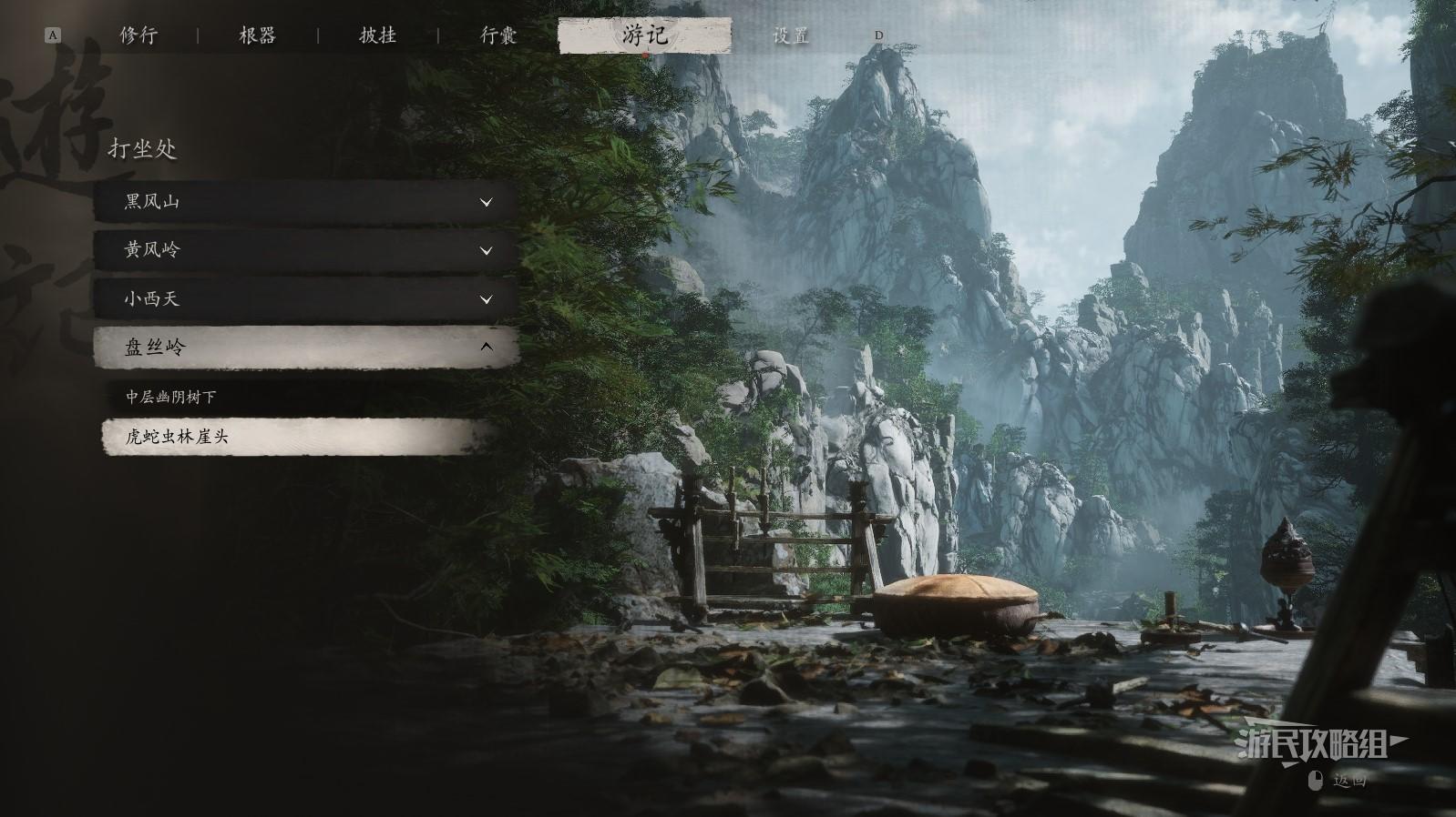 《黑神话悟空》全打坐蒲团位置及收集路线 黑神话悟空蒲团在哪_第四回-盘丝岭-虎蛇虫林崖头