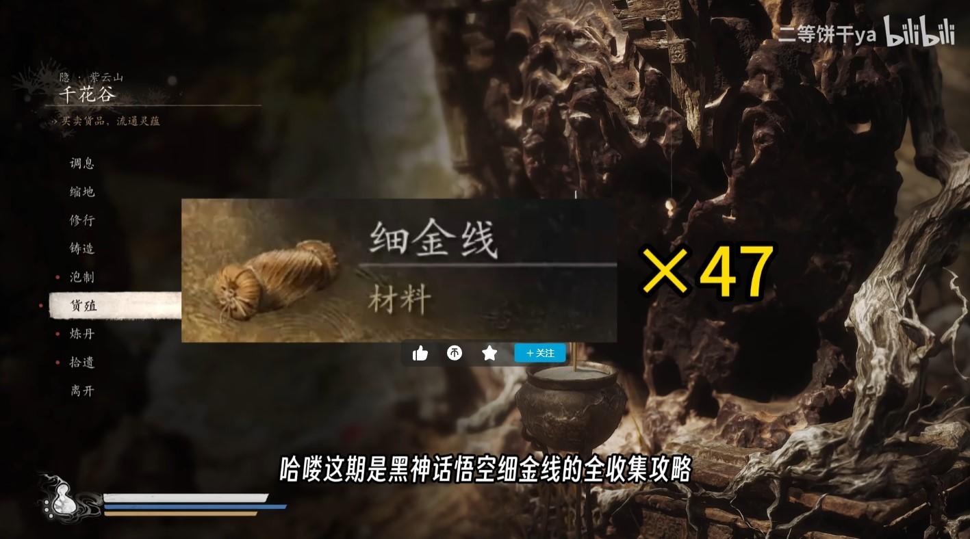 《黑神话悟空》中的细金线是锻造装备的重要材料,那么游戏中哪里可以收集到呢?下面请看由“二等饼干ya”带来的《黑神话悟空》细金线收集视频路线,希望对大家有用。 现已上线,地图不仅囊括土地庙等地点、收集物品的点位,还标注了全部Boss、隐藏支线和重要道具的点位,照着地图走轻松全收集。