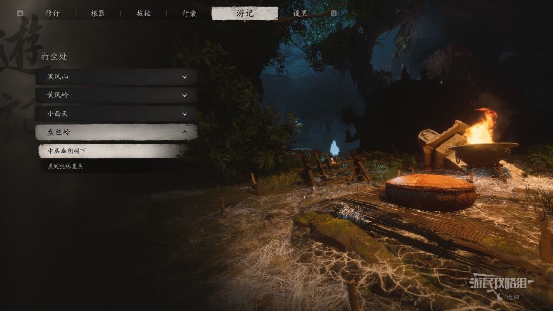 《黑神话悟空》第四回蒲团位置及路线 第四章蒲团在哪_第四回-盘丝岭-中层幽阴树下