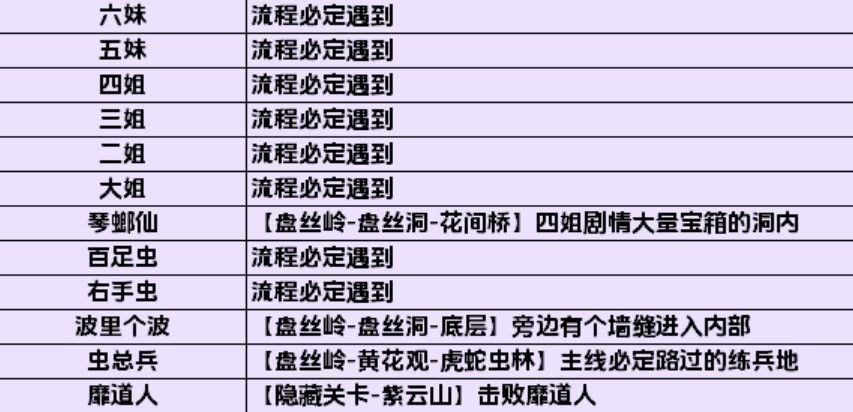 盘丝洞上层 碎玉池 花间桥 中层 千红窟 绝想崖 堕龙壁 底层 若仙庵 濯垢泉 万慈窟