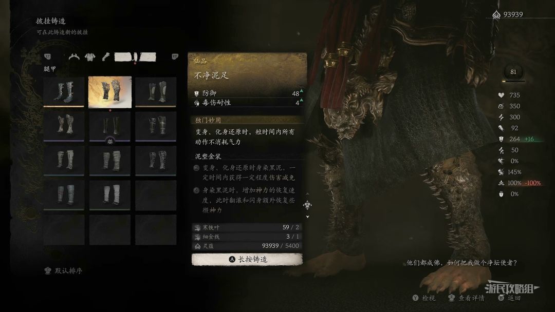 《黑神话悟空》第四回披挂图鉴及获取 第四章装备有哪些_腿甲-不净泥足