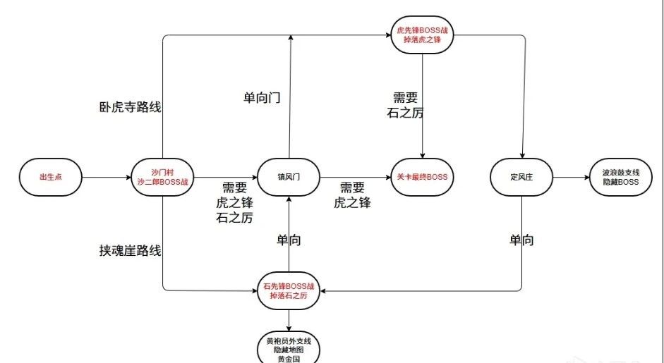 《黑神话悟空》中第二张的地图为黄风岭,在黄风岭中有着不少隐藏支线和可收集物品,下面请看由“鲤鱼讲故事”为大家带来的《黑神话悟空》第二章黄风岭全收集攻略,希望可以帮助到大家。 流程图红色的是必打BOSS。这关绕主要是因为分成了两条路线,并且两个都能一路走到最终BOSS。 我们还是按照每两个土地庙之间的路程分段,方便查漏补缺。按照获得的先后顺序来排收集要素。 出生点-沙门村(村口)相信大家刚出门走两步