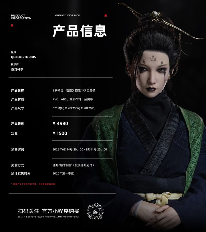 4980元《黑神话:悟空》四姐手办明日预售