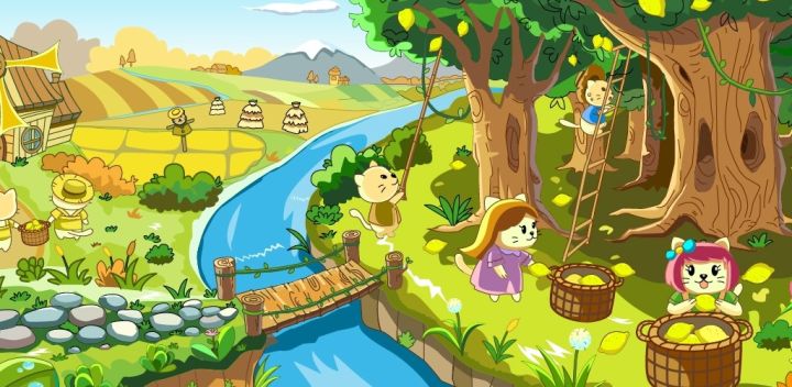 童话王国里有一个非常爱猫的乔治大叔,他创建了一个喵咪庄园,那里居住着一群辛勤的果农和他们可爱的猫咪宠物。一天,黑森林里贪吃的巨人族带领着他们饲养的恶犬袭击了喵咪庄园。为了阻止巨人族和恶犬破坏庄园,猫咪们必须通过吸收水果获得能量,夺回被占领的领域…