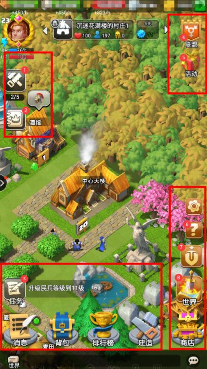 哈喽大家好,我是小饼砸~~上期给大家讲完了【岛屿系列教程】,今天咱们正式开始【新手系列教程】啦!(❤´艸`❤)大家刚进入村庄后,看到大大小小的图标是不是都花眼啦~别慌,饼砸今天就给大家讲讲村内的一些“小设定”。| 建筑工人队列上图【编号1】是【建筑工人队列】,默认是只有两个工人,最高是5个工人。建议大家一开始就用700金币(100、200、400依次递增)把工人全部解锁。主村解锁5个