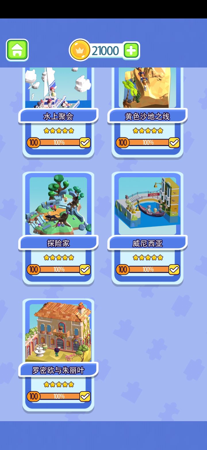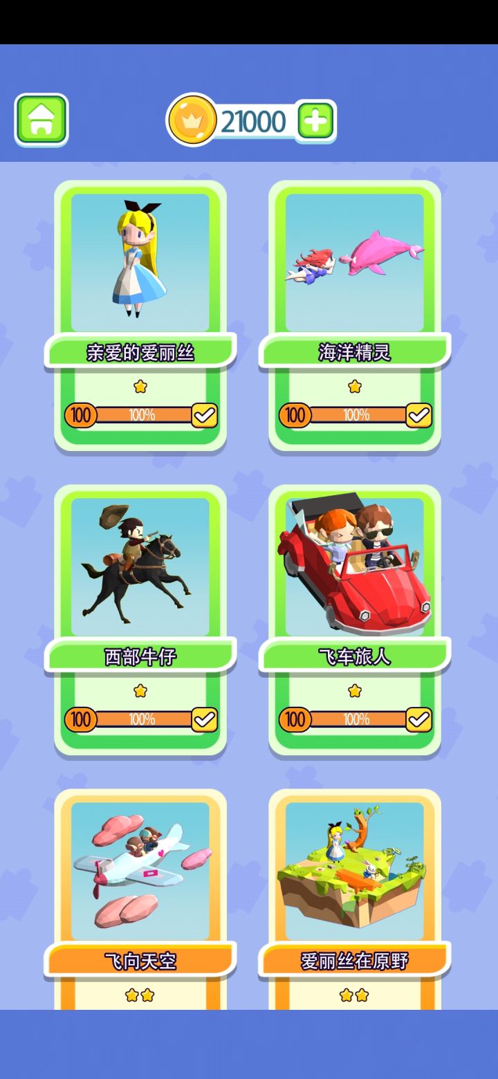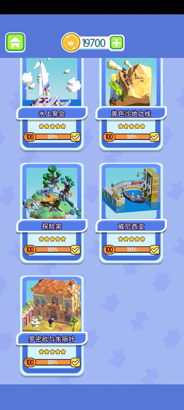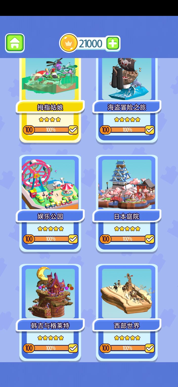 前面的关卡是简单的个体,后面是相对复杂的场景,有些个体还会出现在后面的关卡中,而大场景还有些个体需要单独拼,特殊关卡需要看视频,但是我玩的时候没有放视频直接就解锁了,我觉得挺好