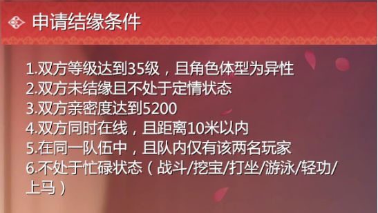 众所周知,剑侠世界最不缺少情缘,许多玩家都在游戏中找到了CP。一直以来我在游戏中时常听到一些疑问“游戏里怎么结婚啊?”“结婚要花多少钱”“怎么吃席啊?”“结婚有什么用呀?“........可见不少萌新对侠侣系统不是很了解~ 接下来我将从求婚、筹办婚礼、结婚吃席、后续培养全流程解释侠侣系统 l 求婚 官方对于结缘系统的描述如下: 这里需要提一下快速刷亲密度的方法:去奇珍阁买【琴瑟和鸣】和【山海相送】