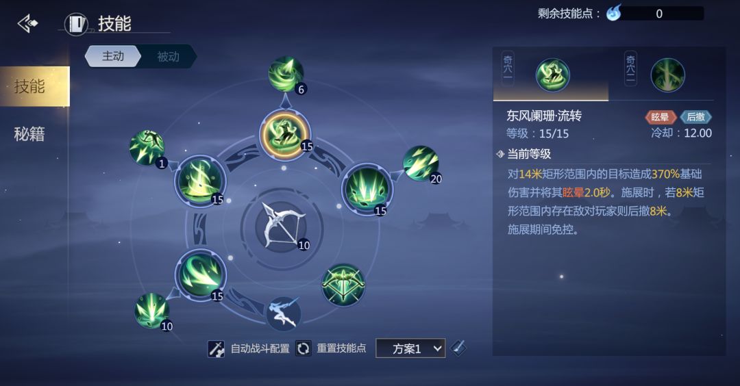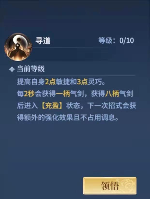 这是20级被动。就加一点敏捷和灵巧,描述一下充盈这个被动,不多赘述。 40级被动,点满cd约为20秒左右。被控制的时候会进入短暂无敌状态,对于控制见长的武当来说相当于给了一个额外的免控机会,运气好还可以规避大量伤害,非常实用的被动招式。 50级被动。一技能强化被动。坎为单体定身,充盈群体定身,该被动增加了破军效果,由于该招式必中,所以增强的收割能力还是比较实用的;离是方向范围伤害,被动增加了减速和
