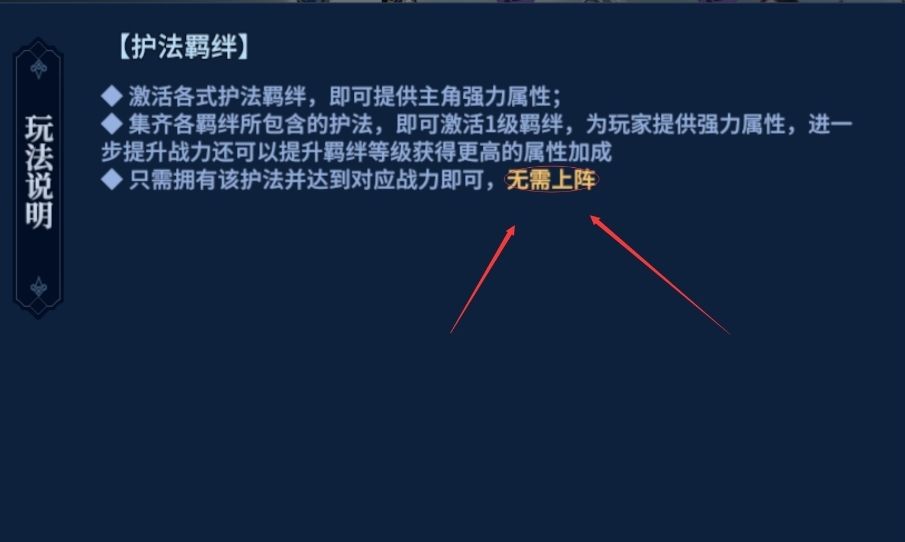 深度剖析一下护法系统 又称如何不花钱还能把战斗力提升!!! 护法系统也就是抽卡,这个系统应该是现在大多手游的标配了,卡片+羁绊的模式让不少玩家是真的头痛,因为不去追求高品质的卡,就无法获得高战斗力。 在这一点上剑侠世界3做了一些不一样的设定。 我们打开护法系统之后可以在羁绊一栏中看到这样的一段解释。 凑齐不一样组合的羁绊即可获得战斗力属性加成,而这个加成无需上护法就可以获得。这时候我们就注意了,在羁绊种类中,大多都是一些蓝卡绿卡的羁绊。这种羁绊在整个羁绊系统中,占比极大,也就是说,我们可以通过银币十连抽,大量的获取低品质的卡牌来凑羁绊,在给这些低品质微微提升一下等级就可以获得羁绊的属性以及升级羁绊之后的属性! 这就叫!白嫖!和同水平玩家拉开差距的细节就在这里!!!