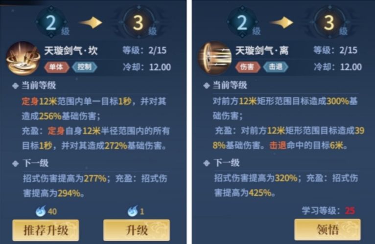 个人非常喜欢武当这个门派,在这里我来说一说我对武当八个主动技能的理解吧。 一技能:坎是单体定身,充盈施法是群体定身;离是方向性范围伤害,充盈伤害增加且附带击退效果。注:充盈是武当的门派被动,战斗状态下每隔约14秒会进入充盈状态,可以额外释放一次加强版的无cd的任一技能,释放一次技能后状态消失。 二技能:兑是范围浮空和持续伤害,浮空期间cd暂停,很优秀的控制技能;艮是范围伤害和范围buff,buff