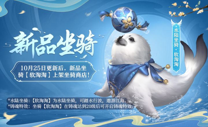 在这个金风送爽,美好与共的秋日,江湖迎来了个憨厚可爱的新朋友!它不仅现实里是个人见人爱的呆萌宝宝,还是个有着“豹”笑如雷、“豹”头痛哭等诸多谐音梗、风靡全网的行走的表情包~有的游戏玩家平时默默潜水,只有在欧皇附身时才会冒泡晒图,像极了海豹为了晒太阳才爬到岸上,所以出现了“海豹上岸”的游戏梗。可见它真是欧气“豹”发的吉祥物!高品质水陆坐骑【软淘淘】将于10月25日更新后和大家在江湖见面!圆滚滚