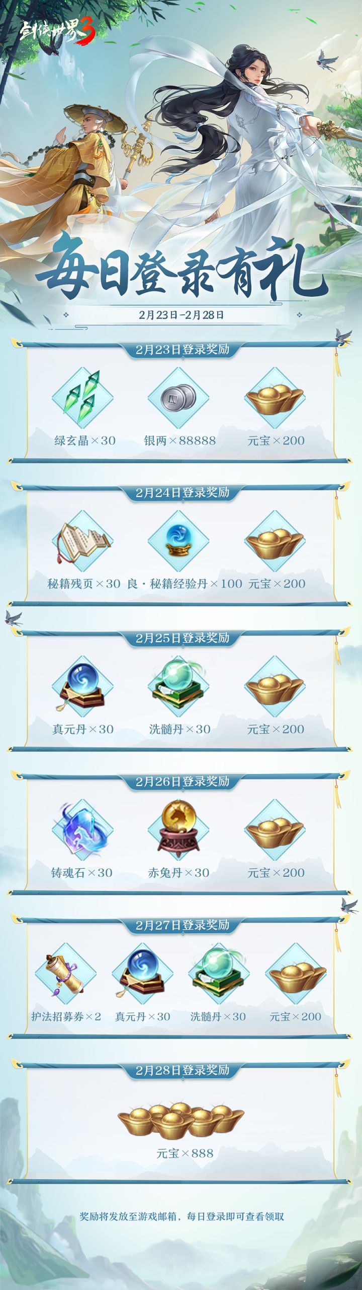 2月23日9:00开启新服:142服-壮志凌云春信良缘意缠绵,又闻笑脸醉莺娇。全新系列活动诚邀少侠前往参与