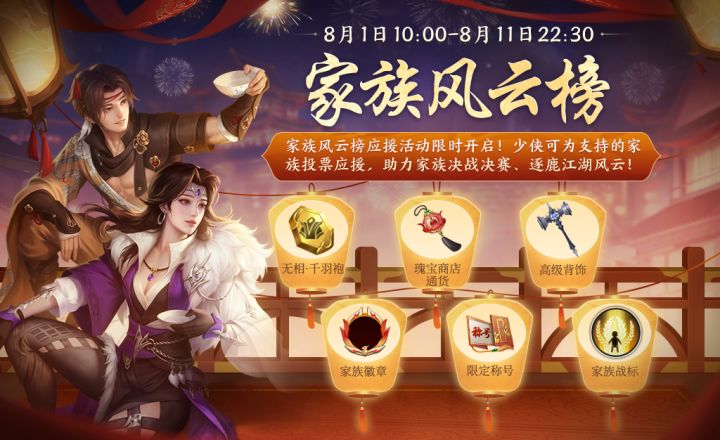 更新预告丨一大批活动来袭!家族风云榜初赛今晚结束~