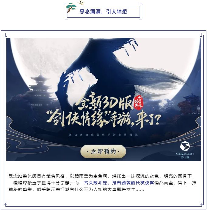 3D版“剑侠情缘”手游来袭?西山居神秘悬念站重磅上线!