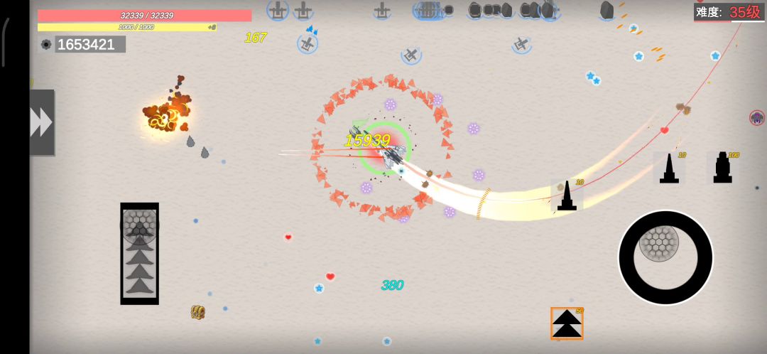 那个些百万血的小飞机真离谱 战车的皮肤,开局会玩就选机枪之类的,伤害可观,不会玩就选激光蜂巢之类的范围自动瞄准的攻击 技能不要断,前期过度很好用 前期尽量不要玻璃装甲,万血后可以考虑 后期多攒点小飞机和固定炮台就不用移动了,站着挂机就可以(捡道具回血10层以上才可以),搭配火种和高温装甲贼好用