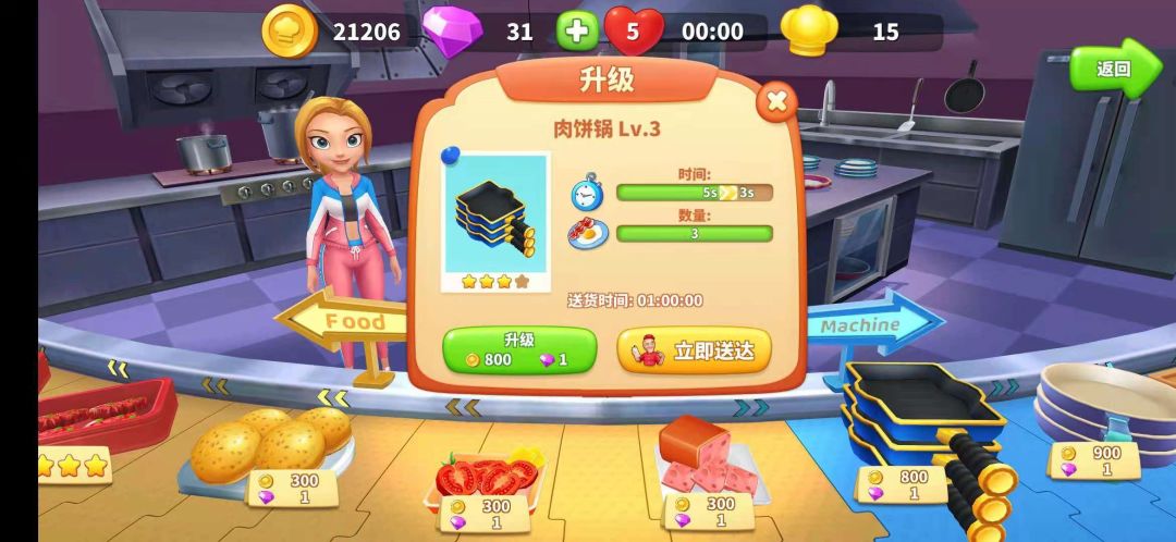 HI 各位关注游戏的玩家们,大家好. 作为小编的我第一次给大家发攻略贴有点小紧张,如果在之后的内容里有任何疑问或者错误,恳请大家直接斧正! 给小编一口饭吃! 本次攻略的目标用户是从来没有接触过时间管理类型游戏的萌新玩家. 游戏的主要循环是通过完成相应的时间管理任务(也就是做饭啦)产出相应Token,在本作中是金色厨师帽.通过消耗Token推动剧情,建设我们的快乐镇! 那么,具体如何做饭呢? 其实,