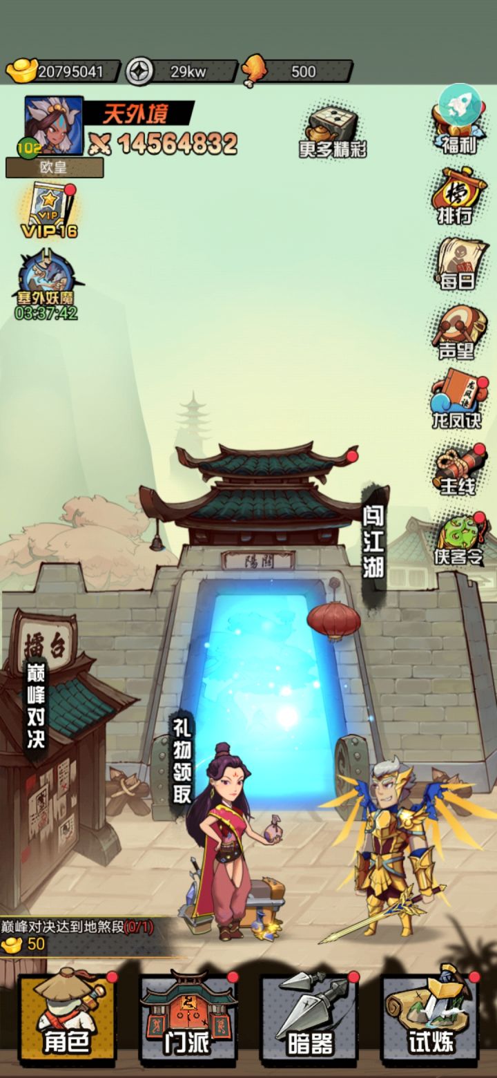 《大侠请饶命》是一款武侠风休闲动作游戏,以推图闯关收集天下奇珍暗器和学习天下武功为主要玩法,玩家在关卡中不断获取豪侠令,利用豪侠令破除天下第一美女上官灵儿的封印,学习神功龙凤决,携手上官灵儿共同斩妖除魔,战胜天下即可获得神位。侠客勇闯江湖走