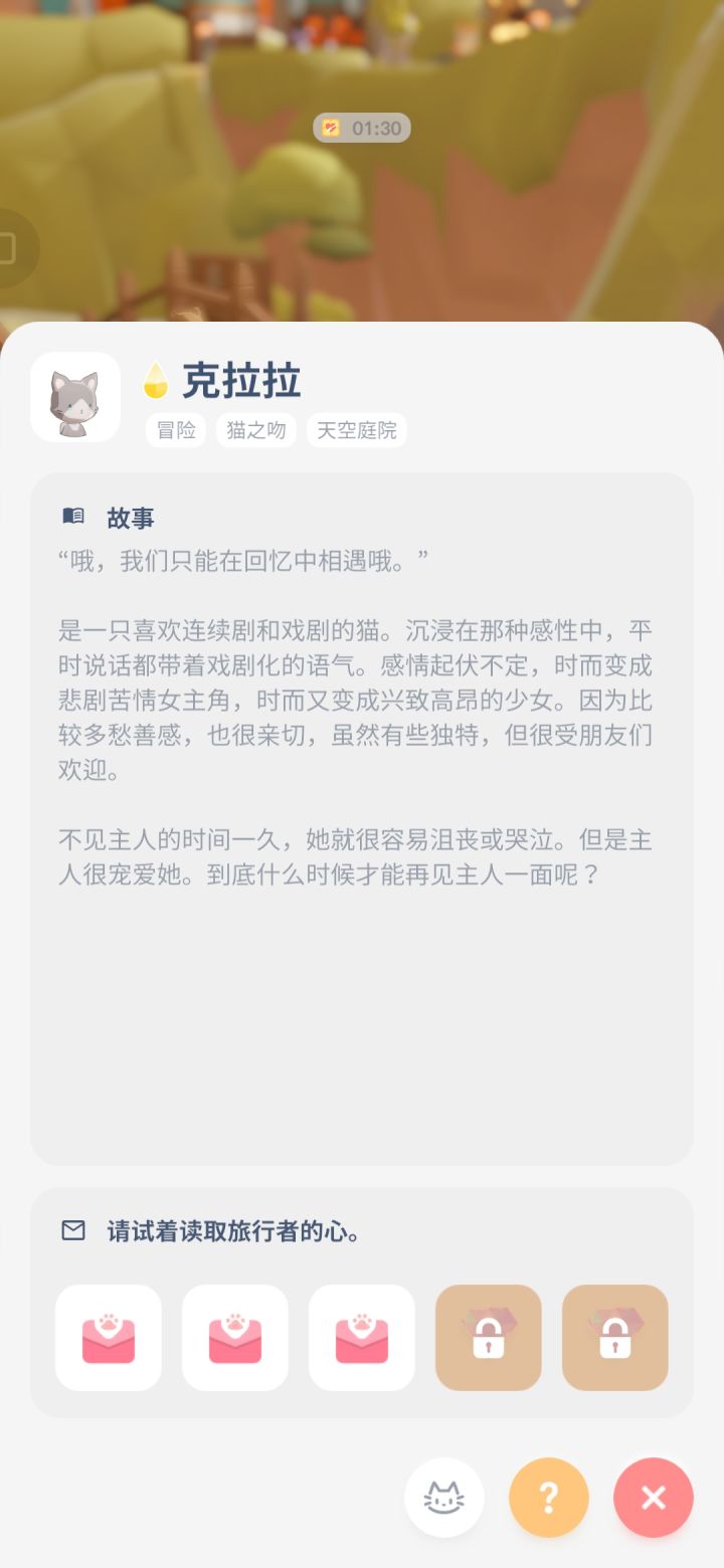 观察了一些小猫的日记发现有些小猫好像是被主人抛弃了诶,因为这个才来到岛上的吗。没想到这么可爱的游戏里面也藏了刀,呜。。