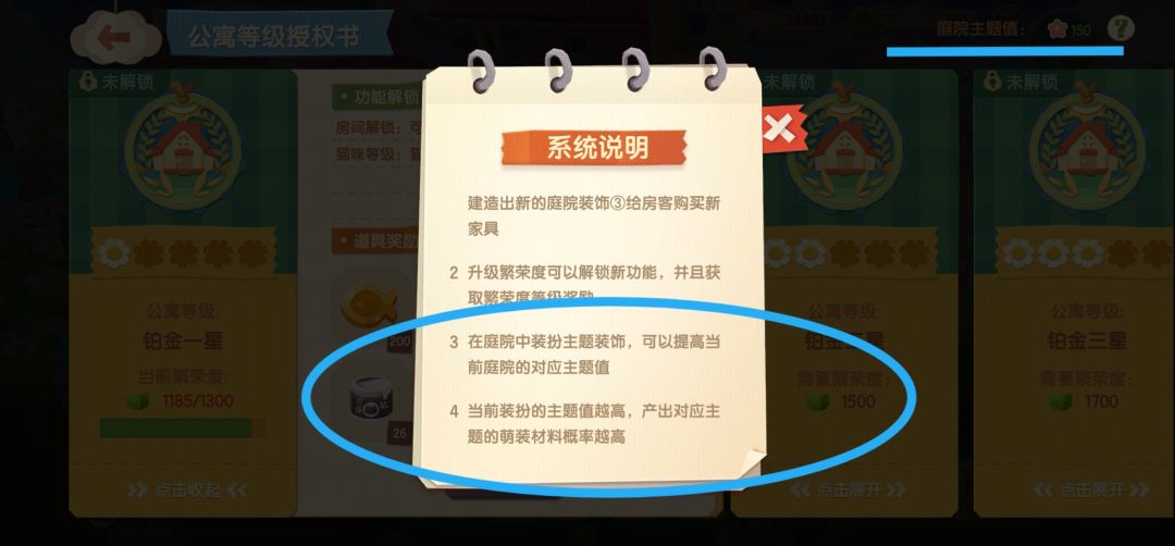 1.公寓等级右上角可以看装扮主题值 2.装扮主题值影响每天挂机时装材料掉落(具体数量没测过不知道) 春季主题值掉粉色的材料,如果要制作春日活动的时装记得把刚抽到的圣诞装饰或者其他属性装饰换掉 圣诞主题材料可以制作商城里才更新的4套 (Ps:商城里更新的4套时装,后三套每套3件,第一套有4件,其中3件直接买,另一个单件还不知道活动怎么得,买完不能激活人傻了…)