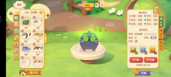 结论放在前面:配种生猫不要停!养猫要投入的资源需要很多,拉扯大一只猫真的很不容易。宝藏关卡会对性格有要求,所以每种性格的猫至少要养一只战神猫。什么样的猫是战神猫呢?就是二代猫中第二条强化词条为“小队所有猫所有属性+200”或者“小队中所有xx性格猫属性+299”的猫。下面俩是还没改性格的 其中小王子池的八条是霸道战神,强度党必抽or先兑换。其次是鲁鲁,胆小战神,兑完八条可以兑鲁鲁。其他三个性