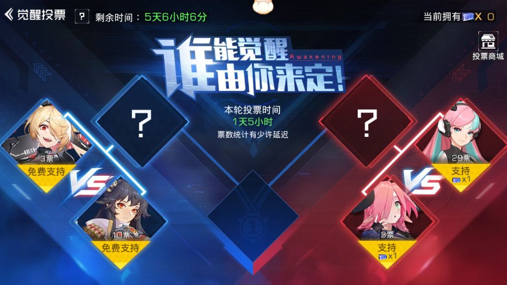 相信各位探长已经通过小道消息知道本次探员觉醒的形式了 本周更新维护后将会迎来探员觉醒投票活动 目前已知地参与投票的一共有四个 通过两轮对决后决出最后的觉醒探员 目前第一轮情况比赛如下 魔族战士:莎莉丝特VS人族坦克:貂蝉 人族辅助:蔡昭姬VS兽族战士:腾蛇 游戏内举办了投票活动,为了给各位探长增加彩头社区同样举办的竞猜活动 具体内容一起来看看吧~ 活动时间:即日起—游戏内觉醒投票结束后 活动内容;
