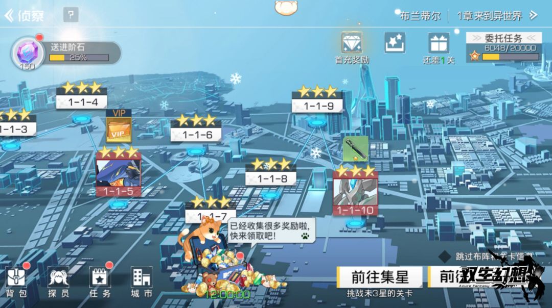 探长,爆炸事件还是毫无头绪呢……没关系,我们先去侦察吧~ 侦察玩法是游戏的核心玩法,不但可以开启主线剧情,解锁各种奖励,而且推关推得越远,挂机收益越高。 前期关卡难度不高,但是随着侦察的深入,关卡难度会逐渐加大。一般的关卡都是由若干个小怪构成,难度一般不高,但每5关将会设置一个BOSS关卡,BOSS关卡难度会比普通关卡高一点,通关后会解锁关卡进度奖励~ 鉴于侦察的重要性,效率推关是前期争取尽量多资
