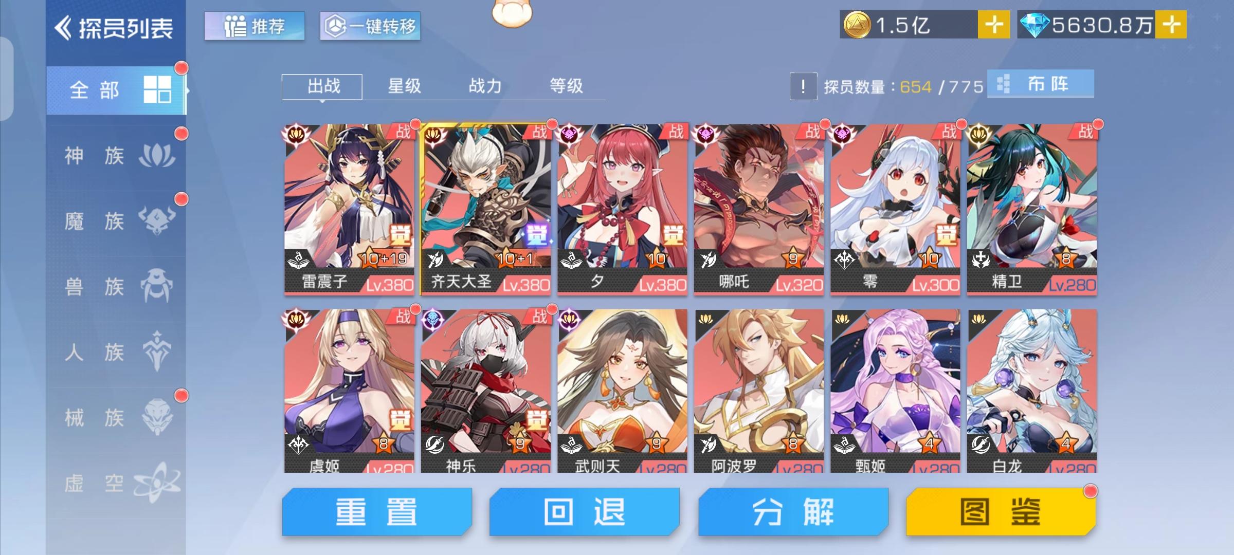玩了差不多一个月,我是新入坑的玩家,目前t0的哪吒,猴子,虞姬还没出来,然后现在就等灵气够了共生殿拉上280级,就可以升20星了,狗粮跟本体都多得溢出来,各种卷也是一大堆,精英抽卡还有心愿抽卡等活动都可以白嫖到2张本体左右,强的角色还是一个吊样需要氪金。不过前期养魔龙就可以了,神乐也送的非常多,这个变态服是不缺金币跟钻石的只是缺灵气,非常缺,每天白嫖的0.1折充值最好攒一下攒到648再买性价比最高