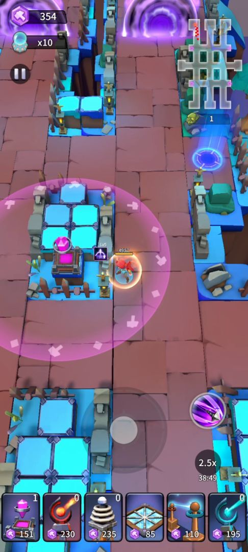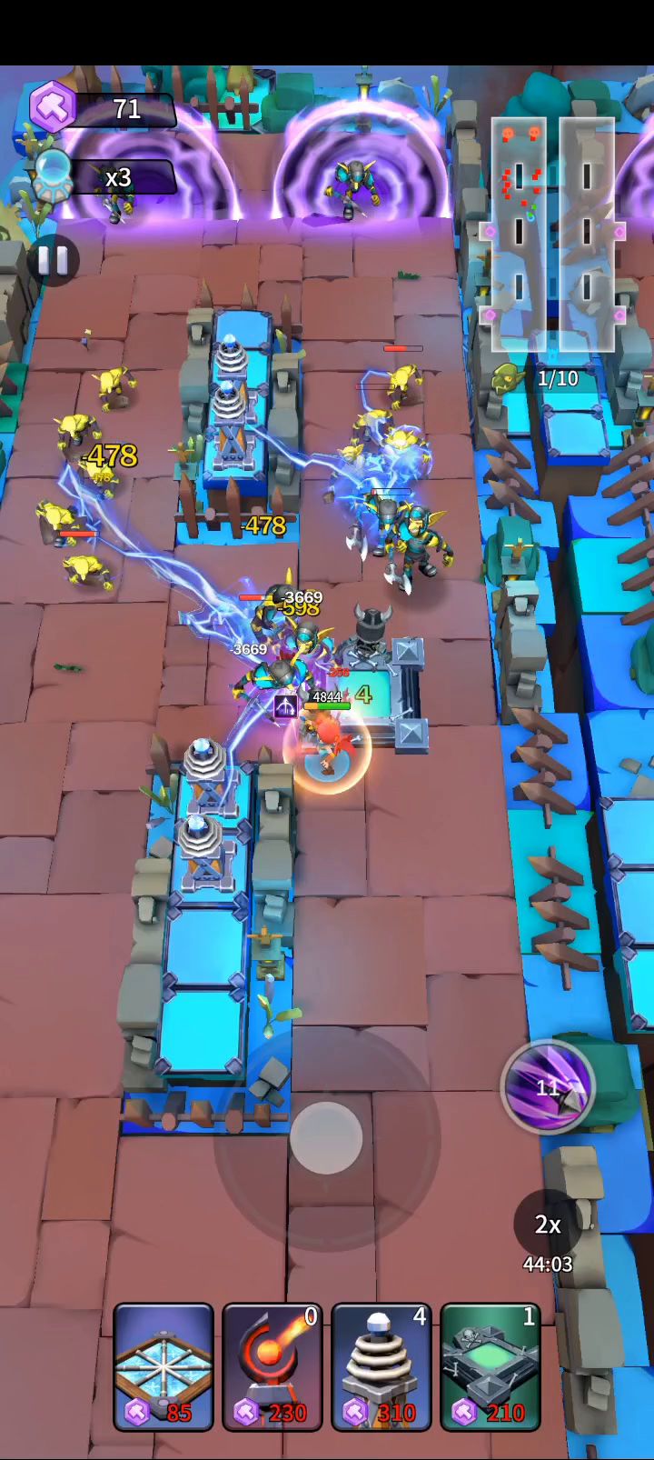 作为万年老二的给大家带来无尽攻略,排名镇楼 除了墓地以外应该都算上平民塔,没有带稻草人即可。有人问为啥不带切割,一是因为没有空位了,二是切割贵,无尽里一个小怪给的建筑币是推图的一半,由于滚石陷阱将会占据大量经济,所以舍弃切割。如果有能源塔的话可以代替冰陷阱,越到后期会拥有越可观的经济收益。 直接上成品图 开局十个电塔,基本不会漏怪,然后及时补出墓地(稻草人),火塔优先放中间上面两个高地,一定要在1