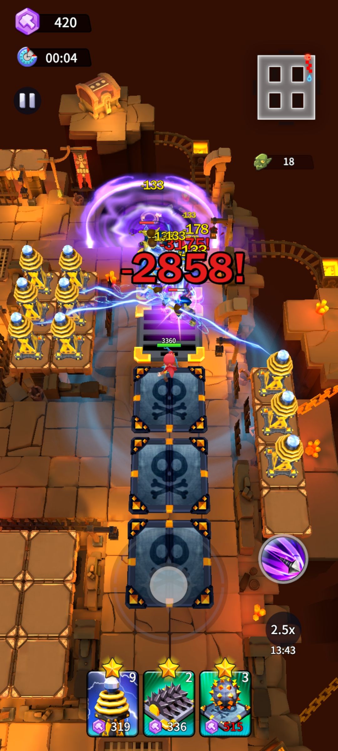 虫洞可以不带,注意下右边多放一些火塔,记得钻地蜘蛛出来的那几波注意墓地里有没有小骷髅给他引出来不然稍微一愣神就进水晶了,可能是我开二倍速打的缘故经常走神漏了,开荒有耐心的还是一倍速好些。