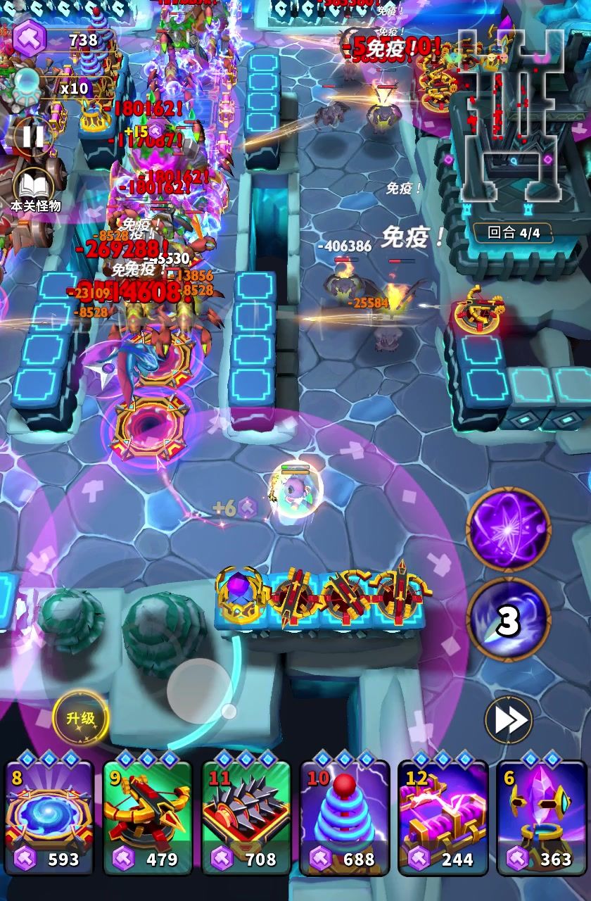 如果有两个以上的冰陷阱范围增伤,那么雷塔配上冰陷阱是更适合爬勇气的,因为冰陷阱前期不需要升3,那么传送可以更快的成型,打3000以上勇气的思路就用传送对付两条路的精英怪,即蜘蛛和攻城车,第三回合就要有传送,这对经济分配是有要求的,另一条路的石像鬼我们用弩对付,但是第三第四回合弩的伤害不够,需要主角配合,这个时候传送的优势就体现出来了,传送可以把三条路线同步的怪物错开,让主角集中对付一条路,清理完石